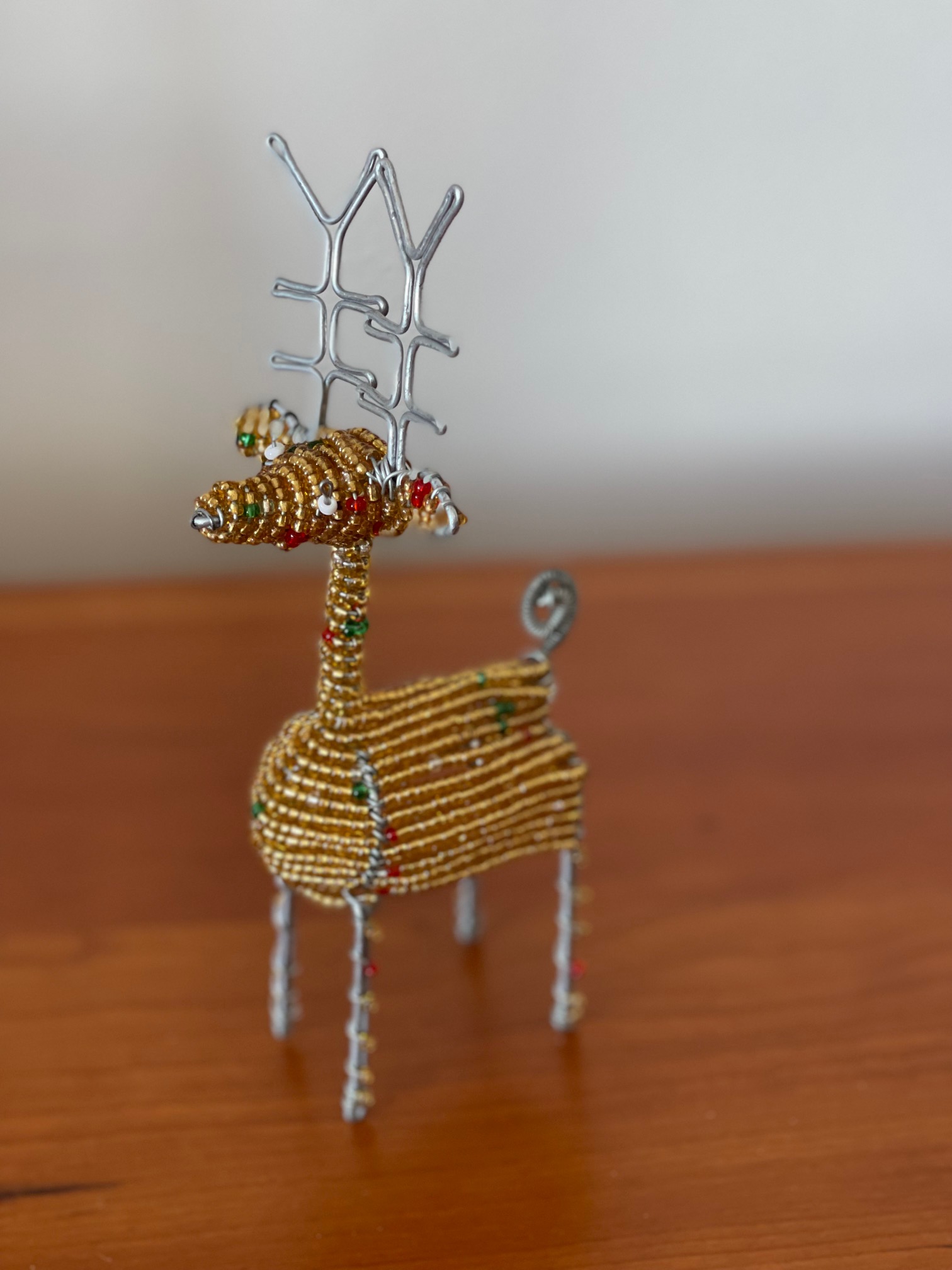 Beaded Reindeer – Gold$20.00 Hand beaded in Kenya. Also available in silver. Notify me when available Beaded Reindeer - Gold quantity Add to cart Categories: African Art and Crafts, Christmas, Home Decor Related products Add to cart Beaded Lion $20.00 Add to cart Beaded Rhino $20.00 Add to cart Beaded Rooster $25.00