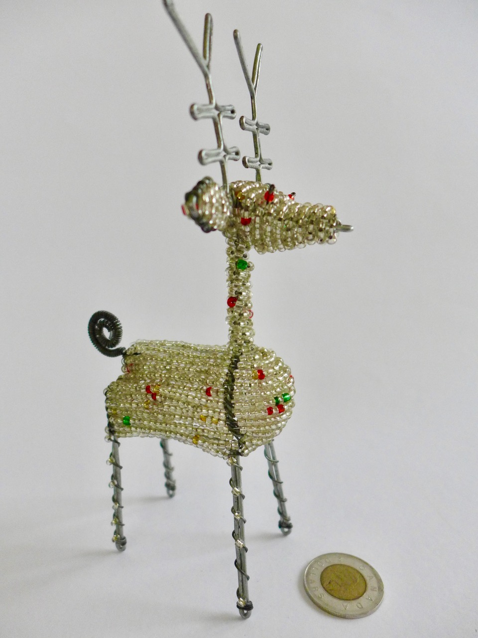Beaded Reindeer – Silver$20.00 Hand crafted in Kenya. Also available in gold. Notify me when available Beaded Reindeer - Silver quantity Add to cart Categories: African Art and Crafts, Christmas, Home Decor Related products Add to cart Beaded Rhino $20.00 Add to cart Beaded Elephant $20.00 Add to cart Woven Trivet – Beige and White $30.00