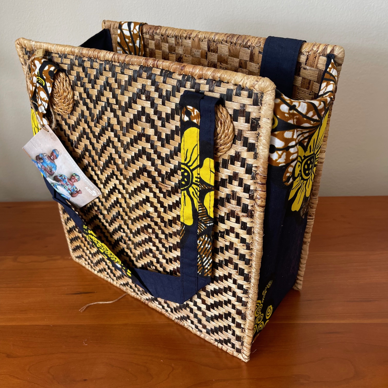 Pop-Up Woven Bag – Floral Fabric$45.00 Crafted from natural sisal fibres and fabric. Pop-Up Bags have a removable bananaleaf panel in the bottom which gives structure to the bag. When removed, the bags fold flat. No pockets or a top closure. Handmade in Rwanda. 11.5″w x 11.5″h x 5″d Notify me when available Pop-Up Woven Bag - Floral Fabric quantity Add to cart Categories: African Art and Crafts, Bags and Purses Related products Add to cart Sisal Earrings $10.00 Add to cart Woven Basket – Tears of the Giraffe $10.00 Add to cart Carved Wooden Giraffe $0.00